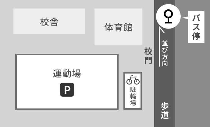 西春小・中学校に駐車の方 バス停の場所